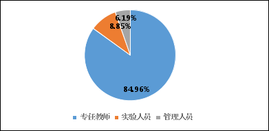 96名专任教师中,生物科学专业有教师40人(表3),教授12人,副教授17人,讲师11人;教授、副教授及讲师占比依次为:30%、42.5%、27.5%,高级职称比例72.5%;博士、硕士及学士占比依次为:87.5%、10.0%、2.5%,硕博士学位占比在97.5%以上。年龄结构:35岁及以下40.00%、36-45岁37.50%、46-55岁17.5%、56岁及以上5.0%。师资队伍年龄、职称结构较合理,规模适度、发展趋势良好,基本形成了一支稳定的、以高职称、高学历、中青年教师为主体的专业师资队伍,能够满足专业教学工作的需要。