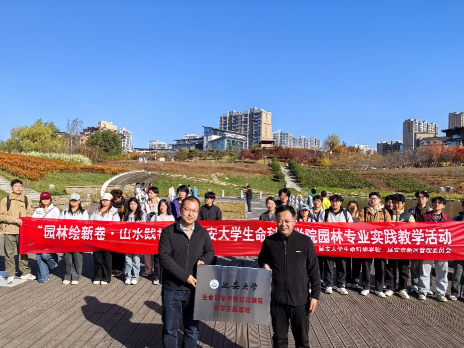 10月31日上午,我校beat365中国官方网站园林专业劳动实践教学活动暨劳育美育教学实践基地授牌仪式在延安新区鲁艺生态公园举行。延安市新区党工委副书记鲁尚龙,延安市新区管理委员会公用事业局局长万娅妮,beat·365(中国)官方网站副院长邓健、教学秘书刘冲、园林与生态系主任李祥东、园林专业相关教师及园林专业学生30余人参加活动。