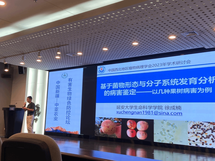 beat365中国官方网站教师徐成楠副教授受邀参会并作了题为《基于菌物形态与分子系统发育分析的病害鉴定——以几种果树病害为例》的学术报告。徐成楠副教授报告主要概述了当前国际上植物病原真菌系统分类的最新研究发展趋势,提出了基于菌物形态和联合多基因系统发育的果树病害病原鉴定策略并汇报交流最新研究成果;同时对近期陕北延安洛川发生的苹果贮藏期水烂果腐病病原进行了系统研究报道,并提出了有针对性的防控策略。