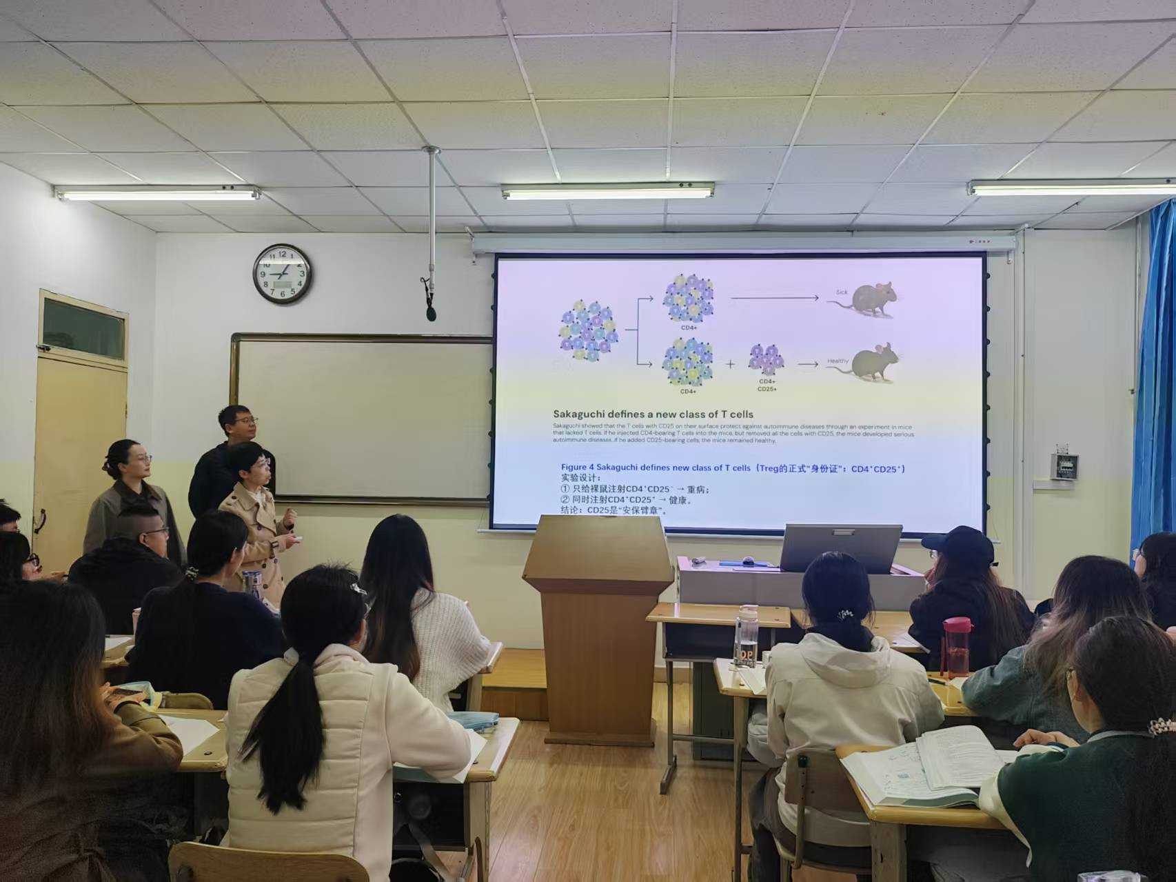 活动由多肽药物资源研究中心刘霞教授做了2025年诺贝尔生理学和医学奖的解读报告,讲解了2025年诺贝尔生理学或医学奖获得者玛丽·布伦科、弗雷德·拉姆斯德尔和坂口志文三位科学家因为发现了一种新的外周组织免疫耐受调节机制,即调节性T细胞及其工作机制,获得了本年度诺贝尔生理学或医学奖。通过本次“诺奖解读”活动,帮助大学生对神经,细胞症及其生理病理的基本知识有了初步认知。