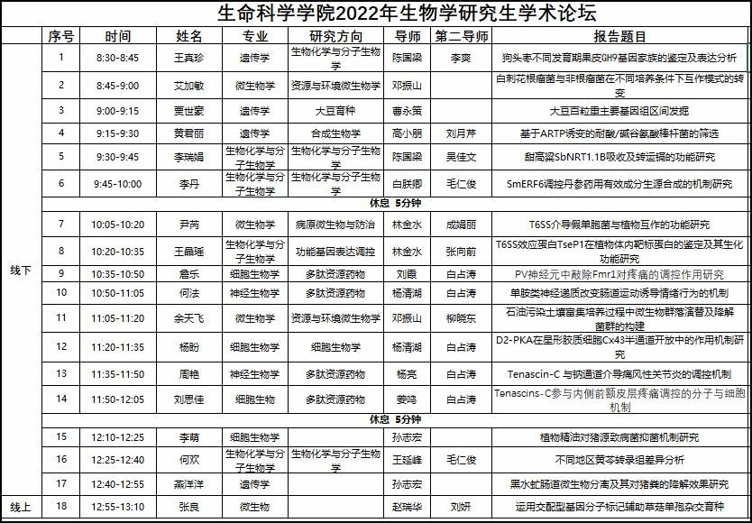 为进一步加强研究生学术交流,拓宽学术思路,激发科研热情,展示学术成果,beat365中国官方网站于10月22日上午在院办会议室举办了“2022年生物学硕士研究生学术论坛”。生物学全体研究生、指导教师和导师组参加,本次论坛推选细胞组白占涛,微生物组高小朋,神经科学组杨亮,生化组程国亭,遗传学组曹永策五名导师代表点评,论坛会议分线下和线上两种方式进行,由生物学学科负责人白占涛老师主持。