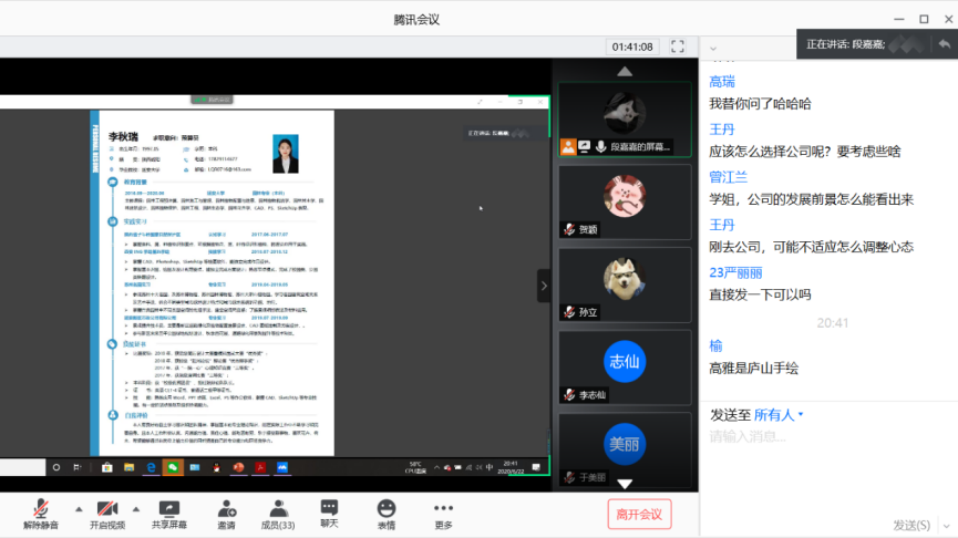 6月22日和23日晚,beat365中国官方网站17级园林专业分两次在腾讯会议平台举行考研工作经验交流会,邀请了2020届毕业生王学乾、高瑞、李秋瑞、贺朋飞、赵琦和郭曼娜六位同学进行了考研、就业经验交流和分享。园林专业17级全体同学和班主任邓健老师参加了会议。交流会由园林17班班长段嘉嘉主持。