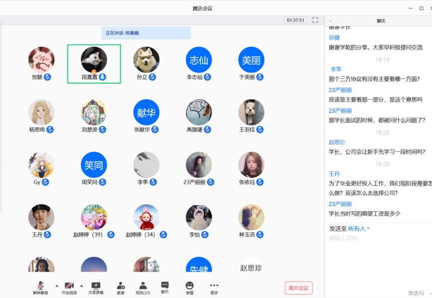 邓健老师最后进行了总结,提醒同学们无论是打算工作还是考研都要尽早确定,合理评估自己,找准定位,确定目标;在此基础上做好合理的时间规划并严格按照规划执行;同时强调复习考研和找工作都是长期战,不能急躁,要稳扎稳打,持之以恒,保持充分的自信;面对今年疫情影响的特殊情况,要合理调节情绪压力,多跟同学和老师交流经验、释放压力。