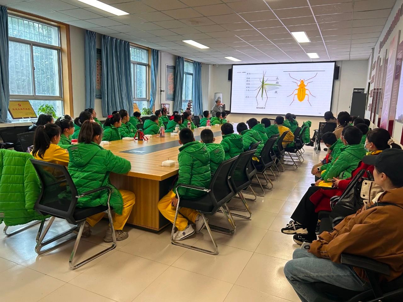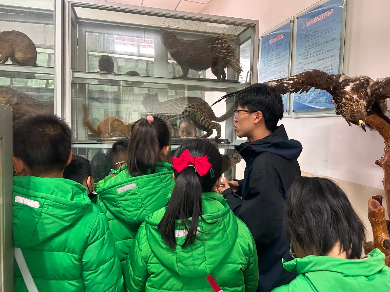 “志行陕西━延安大学科技服务队”的骨干教师和队员进行了本次活动的具体流程及参观项目的精彩介绍。孩子们怀着激动的心情,认真聆听了动植物标本室队员向同学们介绍大熊猫、羚牛、褐马鸡等陕西省分布的国家珍稀濒危动物的形态特征与生存环境。老师们用生动的语言从多个方面为学生讲解了我们身边常见昆虫和鸟类的特点和生活习性,让孩子了解到动物是大自然生态系统中不可缺少的重要组成部分。讲座不仅让学生们认识了缤纷的动物世界,更进一步激发了学生们对生物多样性保护和生态环境保护意识,切实体验到了生物的奇妙和科学的魅力。